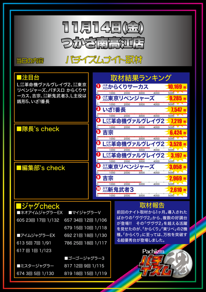 - 2025.11.25 | つかさ南高江店 ホール別結果報告 パチイズムナイト取材 取材企画内容