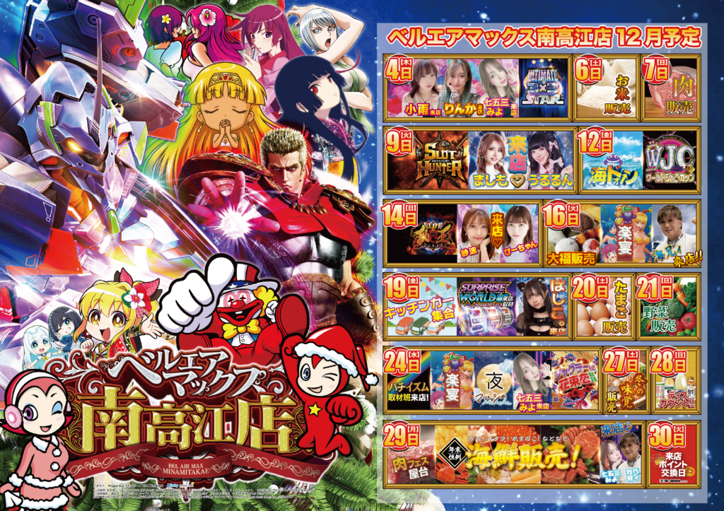 - 2025.11.30 | BEL☆AIR MAX荒尾店 ホール別 BEL☆AIR MAX北部店 BEL☆AIR MAX南高江店 ホール別カレンダー TOP特集 特集情報