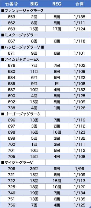 スマスロでは3台設置の新台「化物語」が3台とも活躍を見せていました。その他、「喰種」や「北斗」などの人気機種を中心に好調台あり。ただこの日の主役はジャグラーコーナーだった可能性あり。特に「ゴージャグ」の活躍は他の機種よりも光るものがありました。