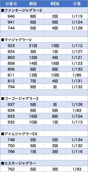 ジャグラー各機種は安定感のある内容で、特に「マイジャグⅤ」は合算1/85~1/120台が複数見られ、シリーズ全体でしっかり結果を残しました。また、スマスロは「ヴヴヴ2」「アズレン」が万枚超と圧倒的存在感を放ち、「北斗転生2」「化物語」や「沖ドキDuoアンコール」も好調。鉄拳シリーズは複数機種でプラスを積み重ね、全体的に幅広い機種に活躍台が登場した1日でした。