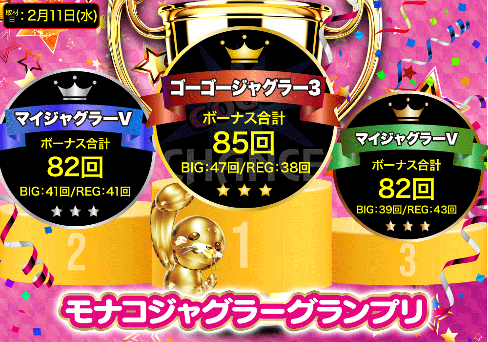 ※ボーナス回数が同数の場合は、BIG回数の多い順とします。