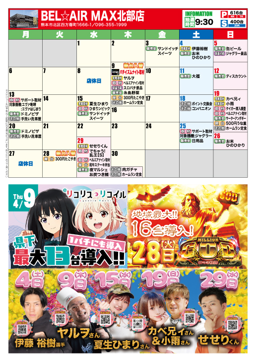 🦭4月11日(土)🤡モナコパレス菊陽店