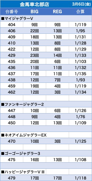 | マイジャグラーV | 3,125 |