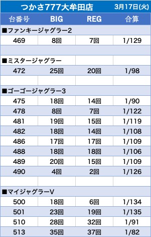 🌙3月17日(火)⭐️つかさ777大牟田店