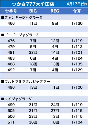🌙4月17日(金)⭐️つかさ777大牟田店