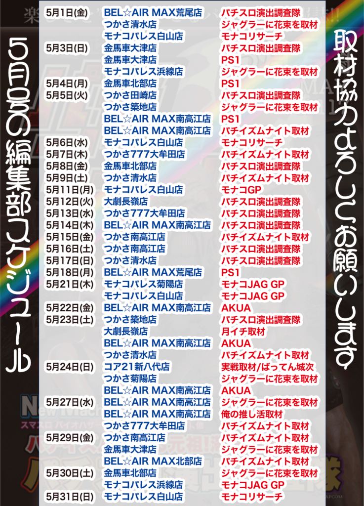 🗓️5月【パチイズム】スケジュール